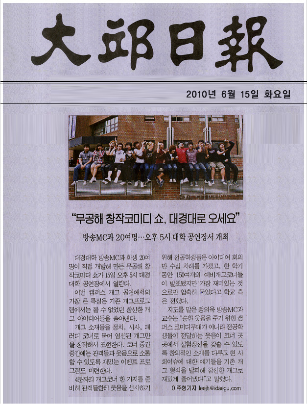 대경대 "무공해 대학 코미디쇼 구경 하실래요"