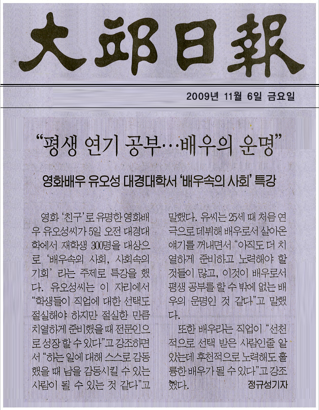 영화배우 유오성 대경대학서 '배우속의 사회'특강