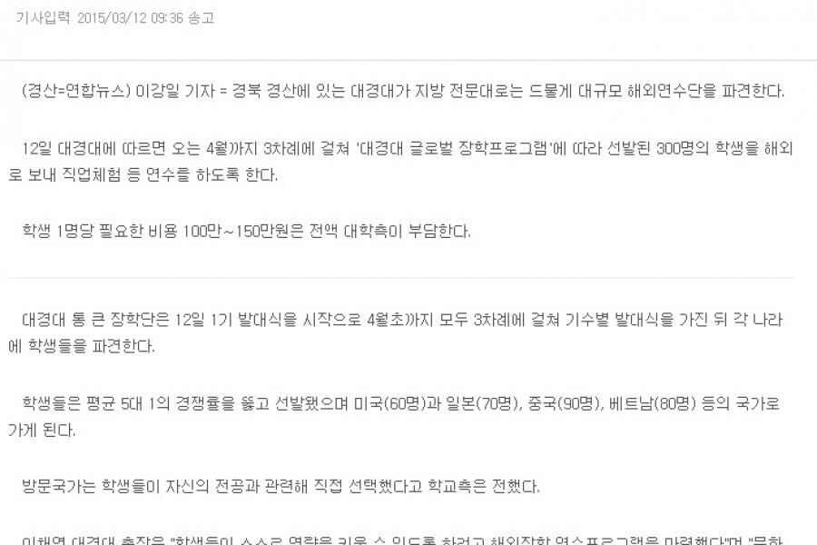 대경대 항공운항과 '이색 착복식'이 언론에 보도 되었습니다.