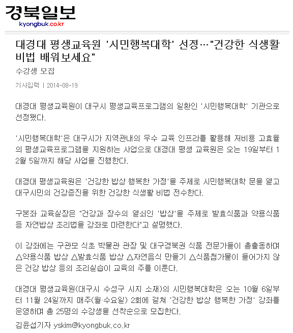 대경대 뮤지컬과, 미소친절대구 캠페인 동참