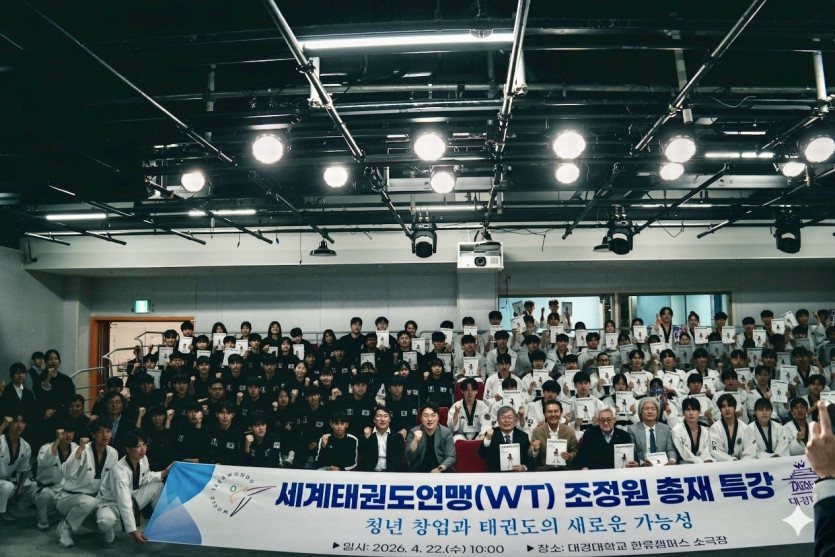 강연 말미에는 대경대 태권도과 학생들의 역할도 강조됐다. 조 총재는 “대경대 출신 시범단원들이 세계무대에서 활동하고 있다”며 “더 많은 학생들이 세계무대에 진출해 태권도 세계화에 기여하길 기대한다”고 밝혔다.