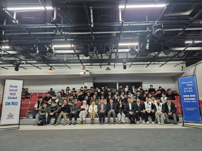 사회복지 분야 전문가인 대통령실 진석범 선임행정관이 24일, 대경대 한류캠퍼스 소극장에서 100여 명을 대상으로 이재명 정부의 보건복지 정책에 대해 특강을 가졌다.