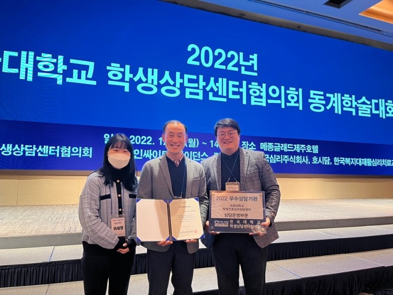 우수상담기관 선정에 대한 시상은 오는 12월 12일에서 14일 동안 열리는 “전국대학교 학생상담센터 협의회 2022년 동계학술대회”에서 진행할 예정이다.