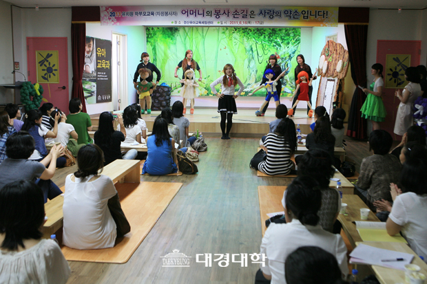 16일, 대경대학 유아공연예술단이 경상북도 경산교육지원청이 주최하고, 경산유아체험센터 공연장에서 개최하는 ‘유치원 학부모 봉사자 연수’에서 유아지도 일일 아동교육법 교사로 초청된 것.