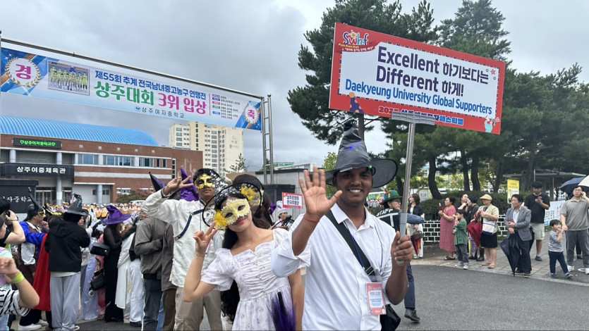 대경대학교(총장 이채영) 외국인 유학생들이 지난 9월 25일(목) 경상북도 상주에서 개최된 상주세계모자페스티벌에 참여하여 지역사회와 교류하고 한국 문화를 직접 체험하는 뜻깊은 시간을 가졌다. 유학생들은 퍼레이드에 참가해 다채로운 문화적 경험을 공유하며 글로벌 화합의 장을 마련하였다.