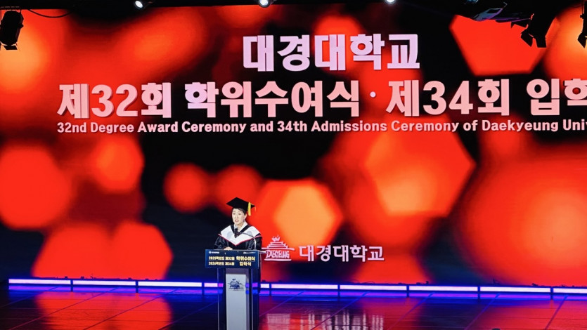 이채영 총장은 축사를 통해 “4개국이 이번 졸업·입학식에 참여한 것은 대경대학의 특성화된 K-컬처의 영향 때문”이라며 “앞으로 대경대학 캠퍼스의 K-컬처는 아시아를 넘어 세계에서 주목받게 될 것”이라고 말했다. 이어 “‘디프런트’한 정신으로 대한민국 사회의 전문가로 성장하길 바란다”고 덧붙였다.