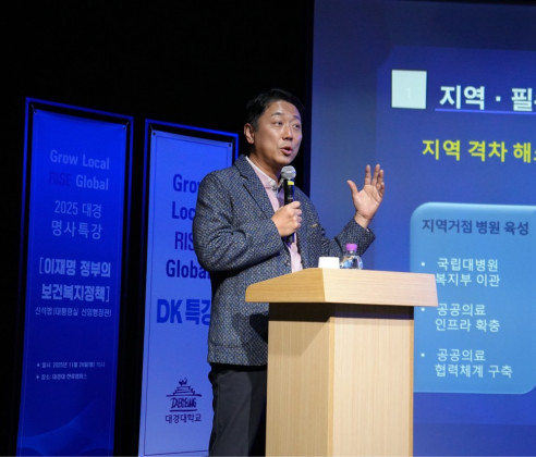[캠퍼스뉴스] 대경대 한류캠퍼스 대통령실 선임행정관 이재명 정부의 보건복지정책 특강사회복지 분야 전문가인 대통령실 진석범 선임행정관이 24일, 대경대 한류캠퍼스 소극장에서 100여 명을 대상으로 이재명 정부의 보건복지 정책에 대해 특강을 가졌다. 이날 특강은 정부의 보건복지 정책 방향을 한눈에 이해할 수 있는 자리로 마련됐다. 진 선임행정관은 국민중심 의료개혁 로드맵과 건강보험 재정 안정화를 위한 국고지원 확대, 지역 거점병원의 육..