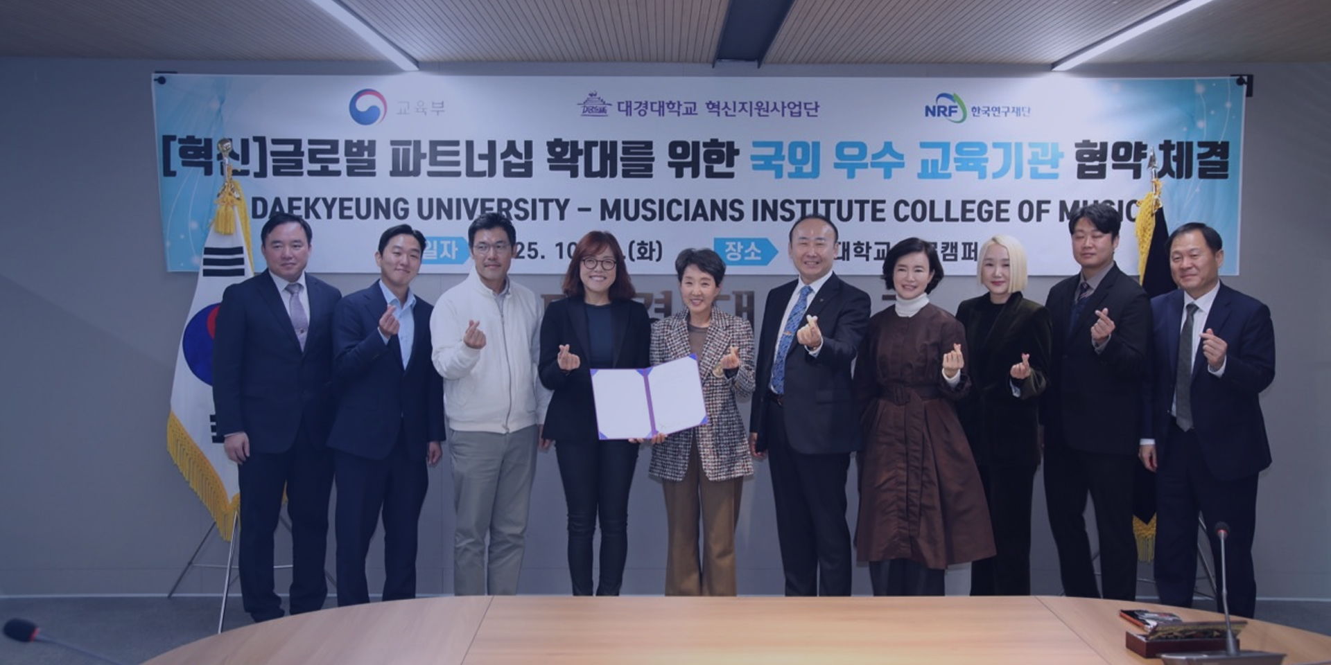 대경대, 드라마 <올인2> 제작사 보민엔터테인먼트와 MOU 체결대경대(총장 이채영)는 11일 한류캠퍼스에서 드라마 제작을 준비 중인 보민엔터테인먼트(대표 김영준)와 MOU를 체결했다고 밝혔다. 이번 MOU는 향후 보민엔터테인먼트가 제작하는 드라마에 대경대 출신 신인 배우들이 참여할 수 있는 기회를 확대하기 위한 취지로 마련됐다. 앞으로 대경대와 보민엔터테인먼트는 드라마 제작 과정에서 협력과 지원을 한층 강화할 ..